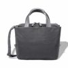 本体のナイロン素材には、塩縮加工が施されています。塩縮加工とは、繊維を特殊な薬品で膨潤させることによって縮んで生地目を詰まらせる加工をすることです。ナイロン繊維の公的水分率も低くなる為、帆布のようなナチュラルでドライタッチな風合いになります。当然ナイロン素材ですので、軽量で、日常の使用では色落ち致しません。弱撥水加工が施されています。付属は天然皮革です。