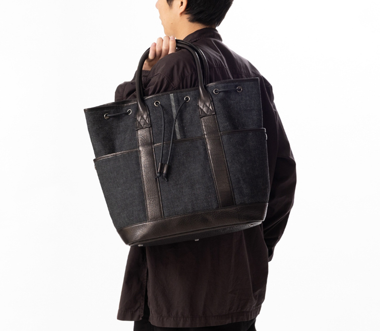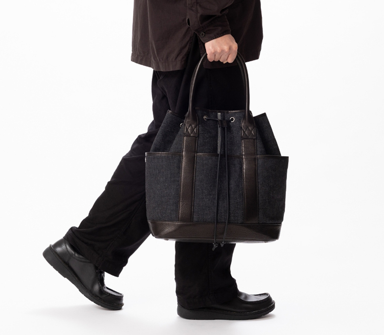 素材を活かしたデザイン。巾着トートの新しいスタイル。