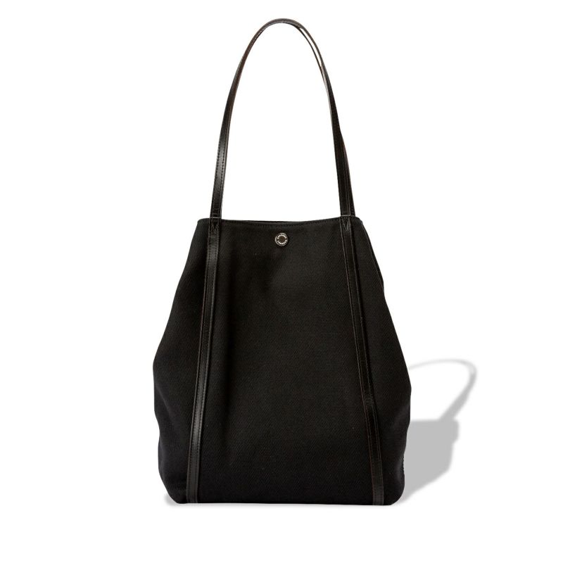 ベースには、1948年に創業し国内の帆布メーカーとして歴史と信頼がある川島商事株式会社の上質で張りのある素材を使用。綿100%で、斜めの織り目が特徴的な綾織りで仕立てています。シワになりにくいしなやかさを持ちながら、自立できるほど厚手でしっかりしています。カジュアルになりすぎない、上品な風合いも特徴です。