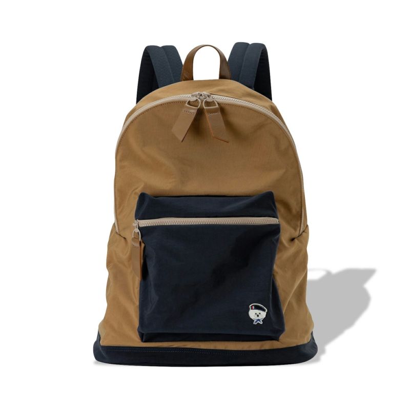 シンプルなルックスと軽さが魅力的なデイパック。容量を充分備え、飽きのこないシンプルな形で様々なコーディネートに合わせやすいところもポイントです。ファスナー引き手とハンドルにはレザーを使用して高級感をプラス。内装背面にはA4サイズが入るフリーポケットを付けています。底部分には、地面に置いた時に衝撃を緩和するウレタンフォームの芯材を入れています。