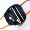 メインルームは大きく開口し、大きなファイルや雑誌でも出し入れがしやすく、クッション材が入ったタブレット・PCルームも装備。内装にはファスナーポケットを備え、外装の小物ポケットも利便性が高い。PVCコーティング加工を施した生地は、柔らかさの中にしっかりとしたコシを残し、水濡れやスクラッチにも強い。ハンドルには質感の高い栃木レザー社製牛革を採用。本体と金具で固定され強度も高い。