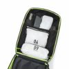鮮やかな蛍光グリーンのテープで補強された内装パネルに注目。ストレッチナイロン素材のポケットと、深さのあるオープンポケット、ウレタン入りのPC・タブレットポケット等が一体となったオーガナイザーだ。13インチ程度までのノートパソコン、アダプター、モバイルバッテリー、マウス、イヤフォン等、機器類をまとめて収納できる。さらに、内蔵パネルはホック着脱式で、新幹線の移動時やホテル滞在時等に必要な荷物だけをまとめて手元に置いておける点も非常に便利だ。