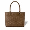 デザインコンセプトは、地場産業、鞄のルーツとも言われている「柳行李」です。日本のクラフトマンシップが息づく、1000年の歴史ある鞄作りの町「豊岡」は「柳行李」という伝統工芸品の生産地としてスタートしました。「柳行李」は柳で『編まれた』箱型の鞄で『丈夫で壊れにくい』為、旅行や荷物の運搬で重宝されました。その鞄のルーツともいえる「柳行李」の編みと格子の文化的デザインや特性を、革加工の職人技によって、取手の編み込み部分、胴面の格子柄にデザインとして表現しています。また、丈夫で壊れにくいという点では胴面の裏に強度とコシのある芯材を縫込み、型崩れが起きない仕様にしました。