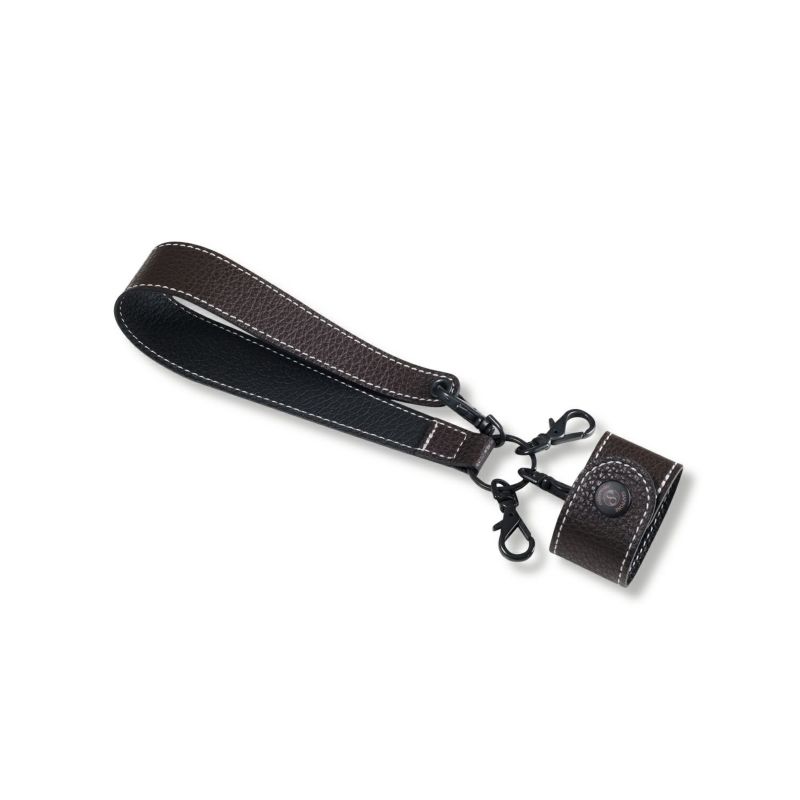 ottorossi 豊岡小物シリーズ等の革小物を持ち運ぶためのハンドストラップです。薄い手袋やエコバッグなどを簡易的にホールドできるベルトが付属します。バッグにチャームのように取り付けて頂くことも可能です。革は、柔らかさがあり上品なシボが特徴のイタリア産シュリンクレザーを使用。シワや色ムラなどの個体差が極めて少なく、断面も綺麗に塗り仕上げました。