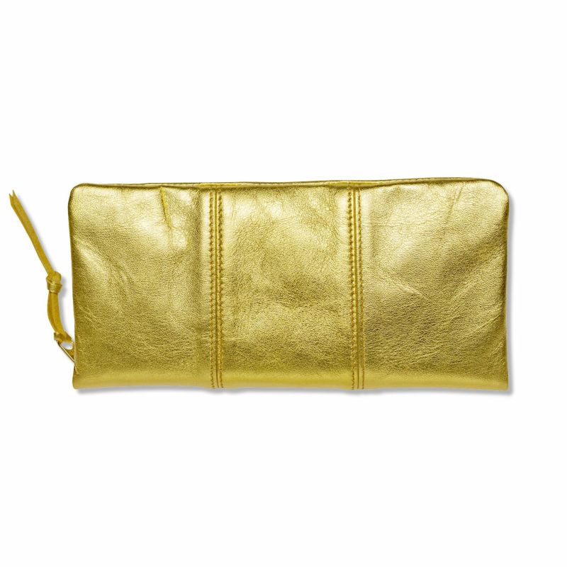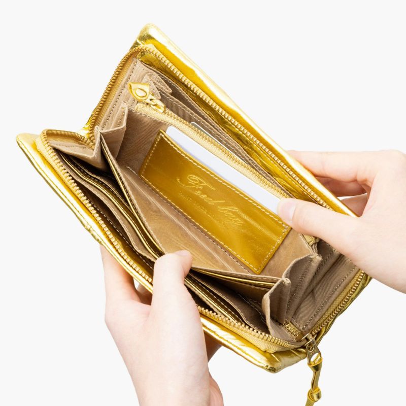 金銀箔は、石川県・金沢の熟練職人が仕上げています。傷や汚れが付きにくいコーティングが施されており、長い期間美しく豪華な表情をお楽しみいただけます。お品数に限りがあり、長い月日を要するため一度欠品しますと生産まで時間を要します。鞄職人と箔職人が作り上げた傑作をご愛用ください。