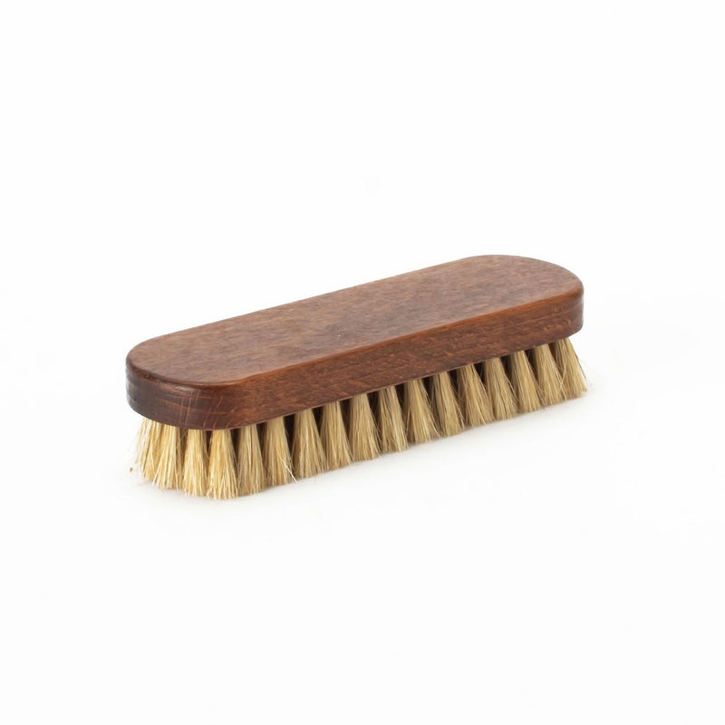 鞄のホコリ落としに最適な白豚毛ブラシです。コシのある毛足はスェードやヌバックなどの起毛革に対して毛並みを揃えるためにも使えます。