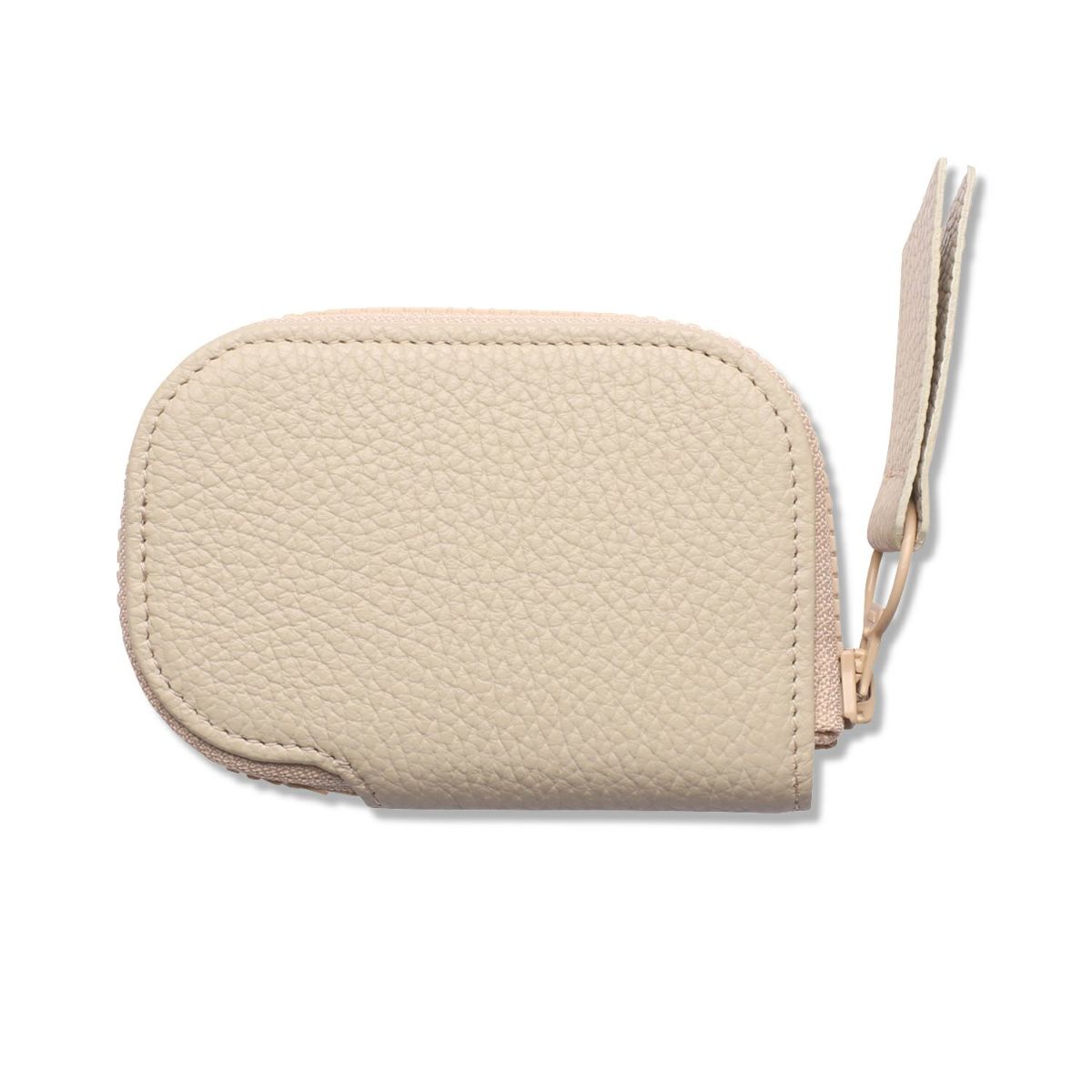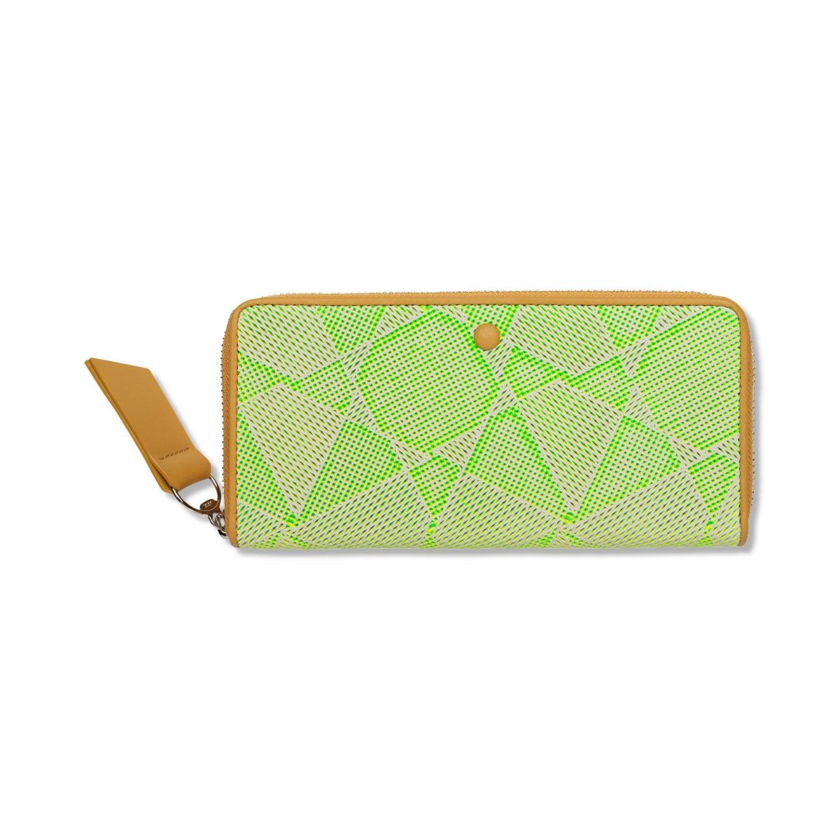 ファスナーが付属するアイテムには、樹脂を射出形成して作られた「ビスロンファスナー」を採用している。大きめの引手とともに本体の革と同系色で統一し、POPな軽やかさを演出。