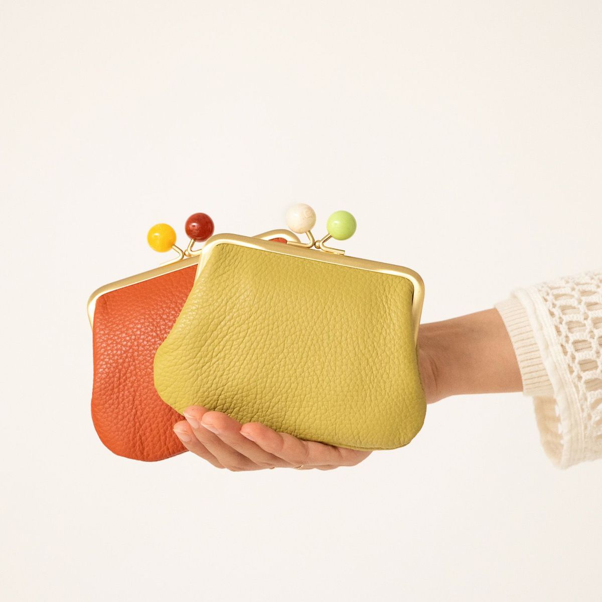 カラフルなレザーで丸みのある特徴的なデザインのアイテムは、使う人をワクワクさせてくれる。