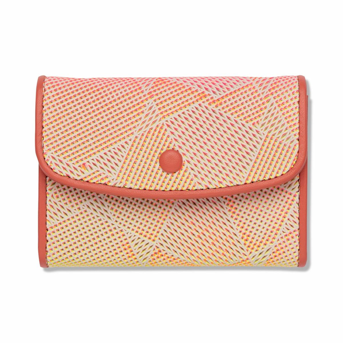 イタリア語で芸術家の手法や様式を意味する「MANIERA(マニエラ)」シリーズは、見る角度によって色合いが変化する個性的なイタリア製の革を使用。革にパンチングのように型押しを施し、くぼみの側面に片方ずつ違う蛍光染料を職人が手塗り作業で塗り上げている。