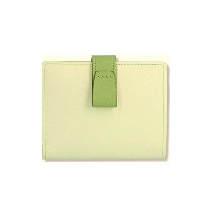 シックな型押しレザーをバイカラーでたのしむ。コンパクトな2つ折り財布。