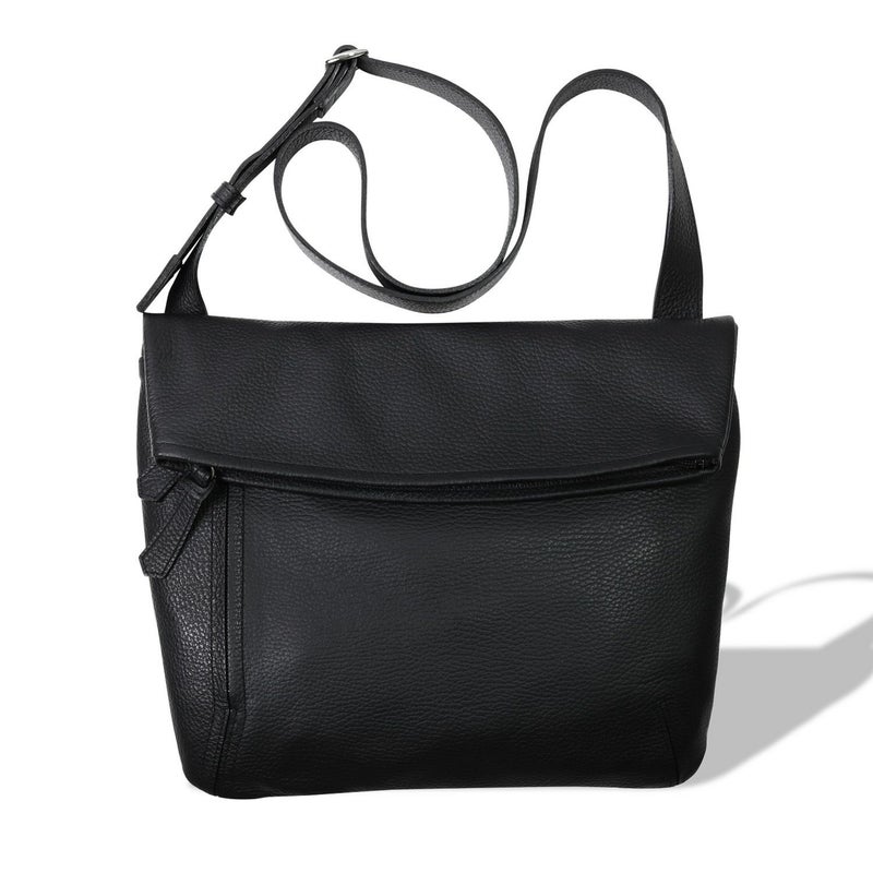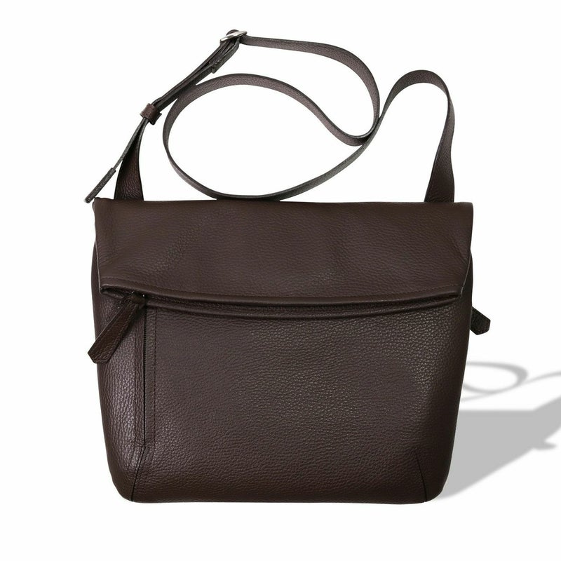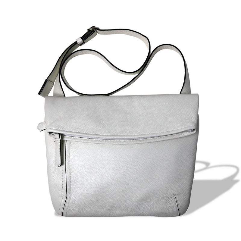 カジュアルアイテムのイメージが強い、口折れタイプのショルダーバッグを、柔らかい革で見事に表現。口元の緩やかなカーブなど、少し丸みのある優しいフォルムが男女問わずフィットする。